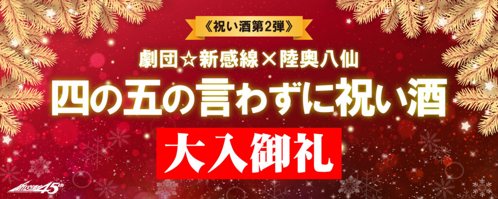 劇場での販売は11月30日をもちまして終了した、劇団☆新感線×八海山『四の五の言わずに祝い酒』ですが、HakkaisanさんのECショップでは、在庫がある限り販売を行っております。※こちらの在庫もまもなく完売です!