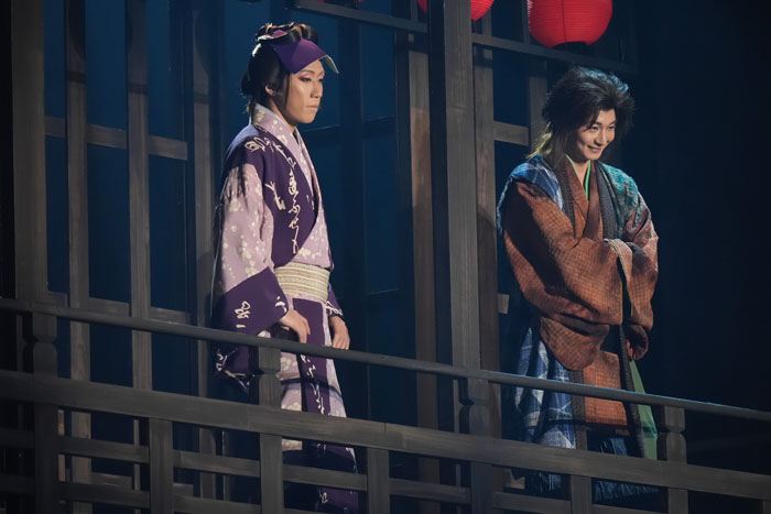 また、二幕になると河野まさとくんと吉田メタルくんの瓦版売りが語り部となって、町衆たちと共に曲に乗せて物語るシーンがいくつかあるのですが、歌も踊りもスピード感も素晴らしいのでお見逃し無く。